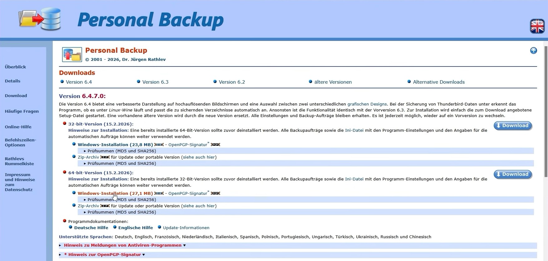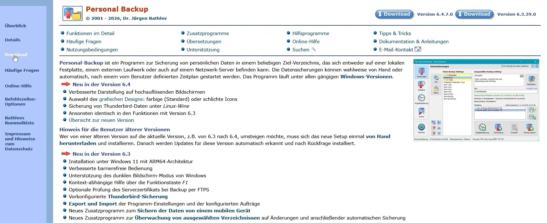 Auf der Website von Herrn Rathlev finden wir Personal-Backup: >hier klicken<.